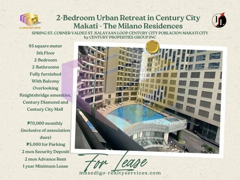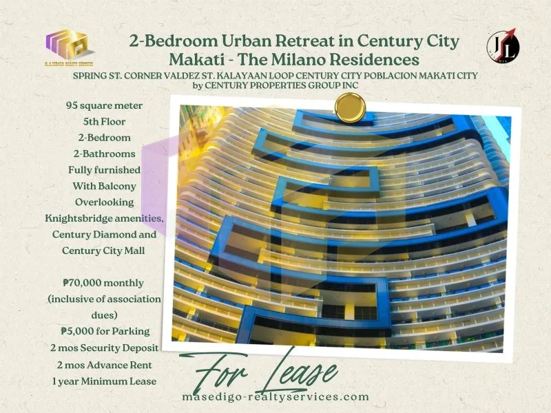 #MilanoResidencesMakati #LuxuryLiving #MakatiCondoForLease #UrbanRetreat #MakatiLife #PoblacionMakati #FullyFurnished #ElegantLiving #ExpatsInManila #RealEstatePH