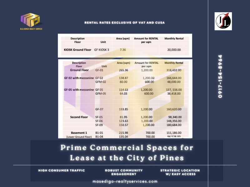 Prime Commercial Spaces in Baguio’s Heart – Lease or Own Your Success in the City of Pines!