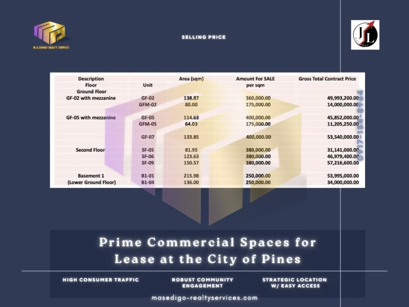 For Sale: Start your ownership journey at PHP 175,000 per sqm – a competitive entry into Baguio’s booming real estate market.