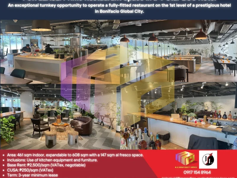 Prime Restaurant Space in a 4-Star BGC Hotel | FOR LEASE