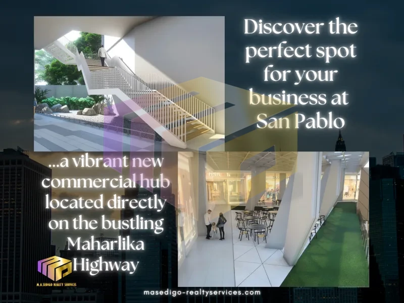 Discover the perfect spot for your business at San Pablo's Prime Central Commercial Spaces, a vibrant new commercial hub located directly on the bustling San Roque Maharlika Highway. With modern facilities and strategic placement, this development is designed to attract both local shoppers and visitors from afar.