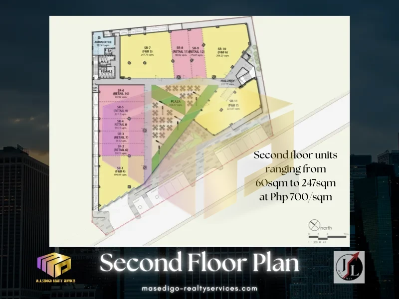 - Competitive Pricing: Starting at Php 800/sqm on the ground floor and Php 700/sqm on the second floor, plus Common Use Service Area (CUSA).